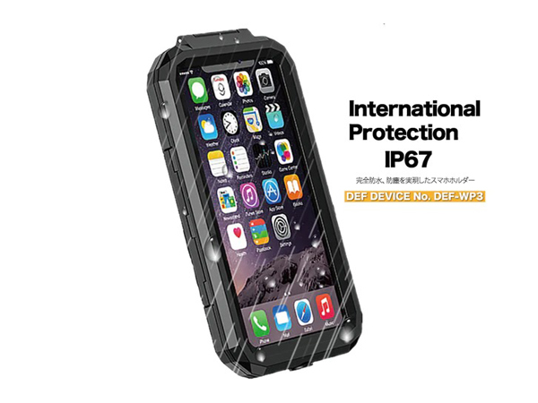 RIDEZ(ライズ)のブランドDEFより、最高レベルの防水性能を有し、IP67規格をパスした防水ハードケース。